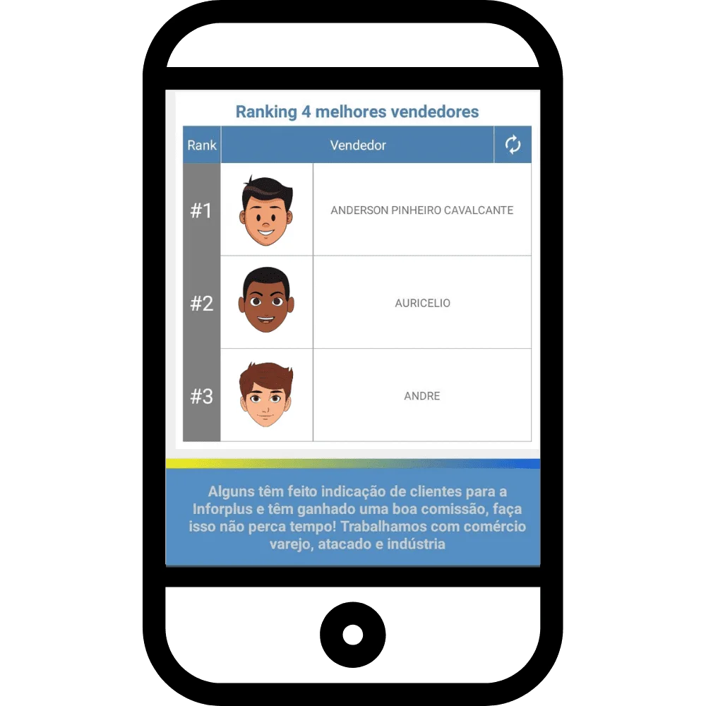 - Imagine sua equipe motivada através da gamificação (jogo entre os vendedores), pois você mostraria ali, na tela inicial do app, os 10 vendedores/representante mais bem colocados. Por fim, prometa prêmios, mensalmente, para os “N” melhores vendedores.