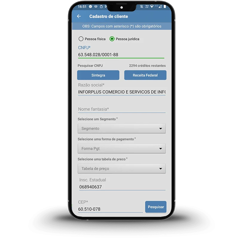 - Busca automática pelo CNPJ.