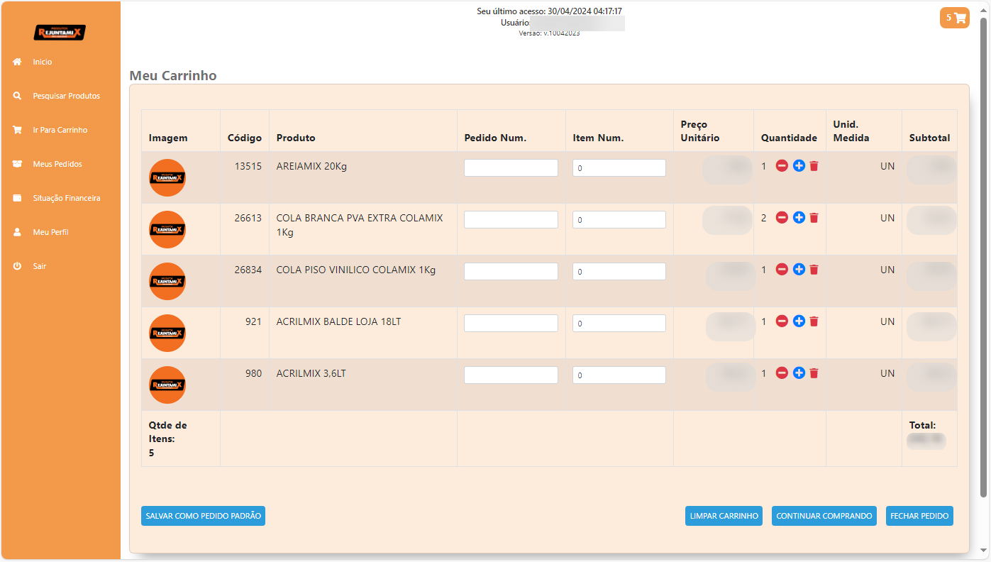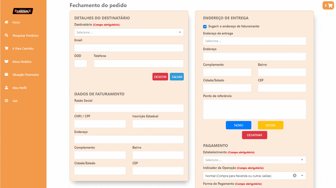 Demonstração de checkout na finalização do pedido dentro do sistema.